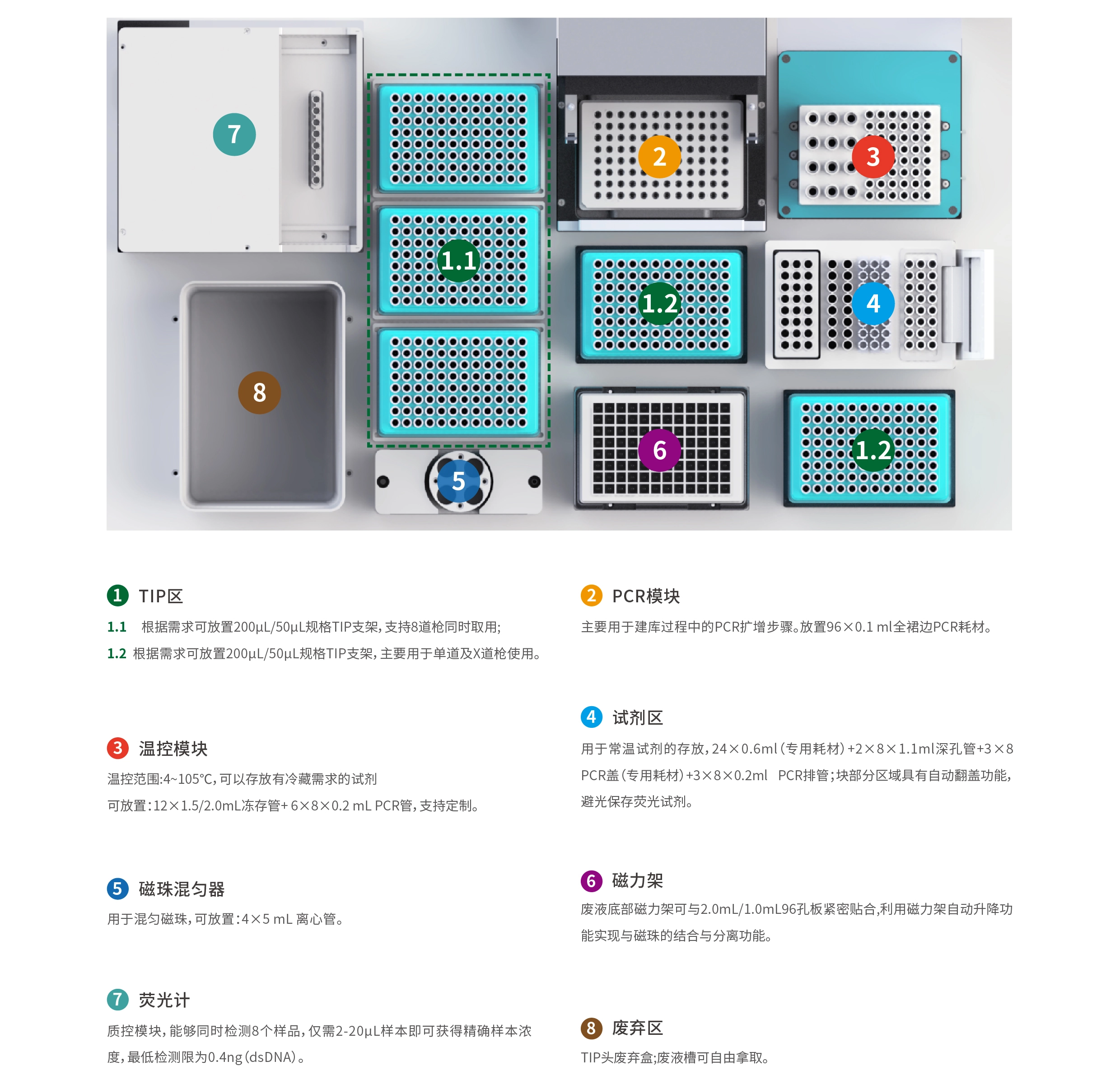 | 荧光检测模块(孔间重复性) | CV<10%(0.4ng≤dsDNA总量<1ng) |